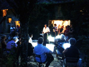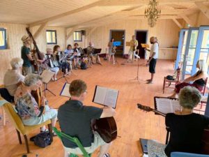 De voorpret begint al zo’n drie maanden voor aanvang met het uitzoeken van het repertoire en het maken van de arrangementen. Mijn missie is om iedereen naar een hoger niveau van musiceren en samenspelen te brengen volgens de snelkookpan methode. Elke dag sharp tien uur beginnen tot half vijf, want dan is het borreltijd. Zelfs na een intensieve dag hoor je flarden muziek van musici die s’avonds nog samen spelen.